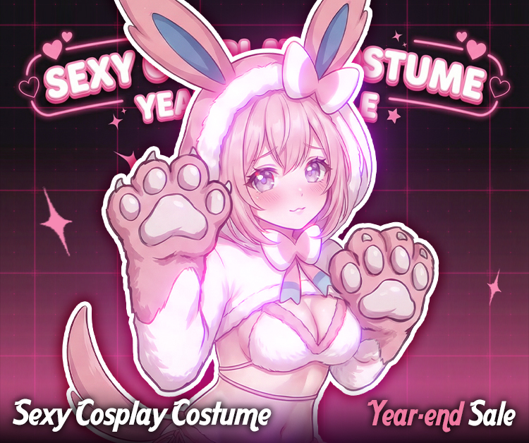 Sylveon Derivative Sexy Hooded Bodysuit Deep V Kawaii One Piece Lingerie Rompers with Choker and Socks