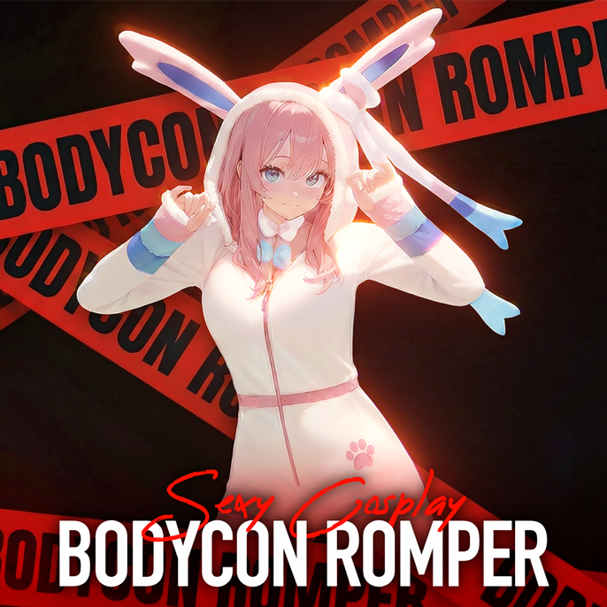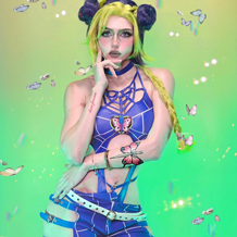 Vocal Derivative Sexy Cosplay Cyber Style Tight Sportswear Bodysuit with Hooded Short Jacket and Headdress